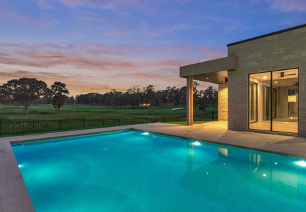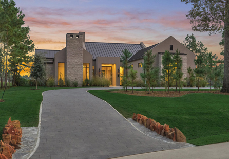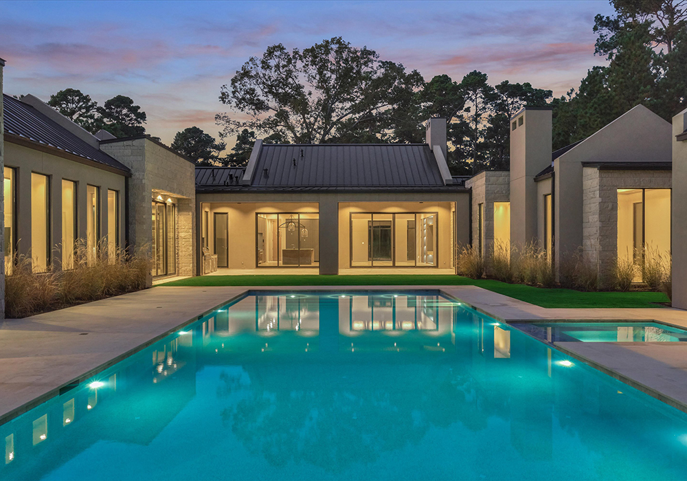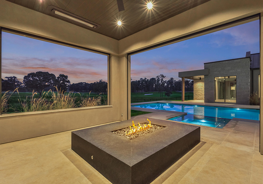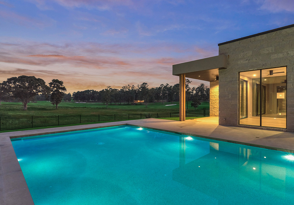 Discover a haven of refined living in the heart of Bluejack National, where modern luxury seamlessly blends with timeless elegance. This stunning residence offers a captivating lifestyle, with beautifully manicured grounds and a pool that highlights the natural beauty of the community. Located between #4 and #5 greens, the golf views are spectacular. The expansive patio invites outdoor gatherings, whether for a serene meal surrounded by lush landscapes or cozy evenings beneath the starry sky.