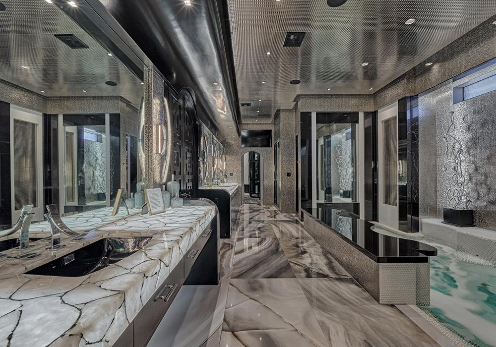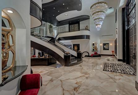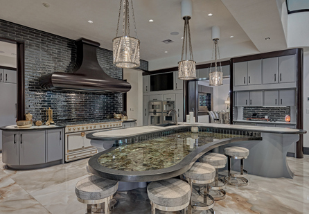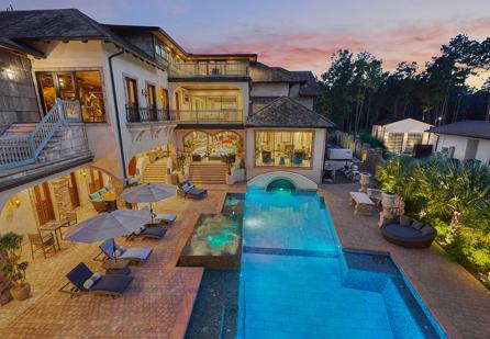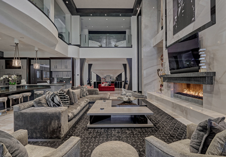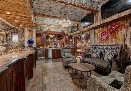 Fitness and leisure are built into daily life with a fully equipped gym, private golf cart path, and dedicated media room for movie nights. Entertain with ease at one of the home’s five bars, or gather on the ground-level golf course patio for post-round celebrations.