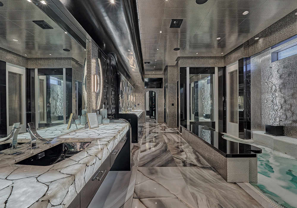 The oversized 4-car garage, plus a separate golf cart garage, ensures space for all your toys. Indulgent spa features include two steam showers and an oversized Jacuzzi soaking tub in the primary suite.