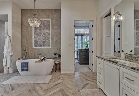 A rare 3.5-car garage provides space for three vehicles and a golf cart, with convenient rear access to the course and an expansive overhead storage loft. Inside, the home features both a chef’s main kitchen with premium Thermador appliances and a full working pantry kitchen for added functionality.
